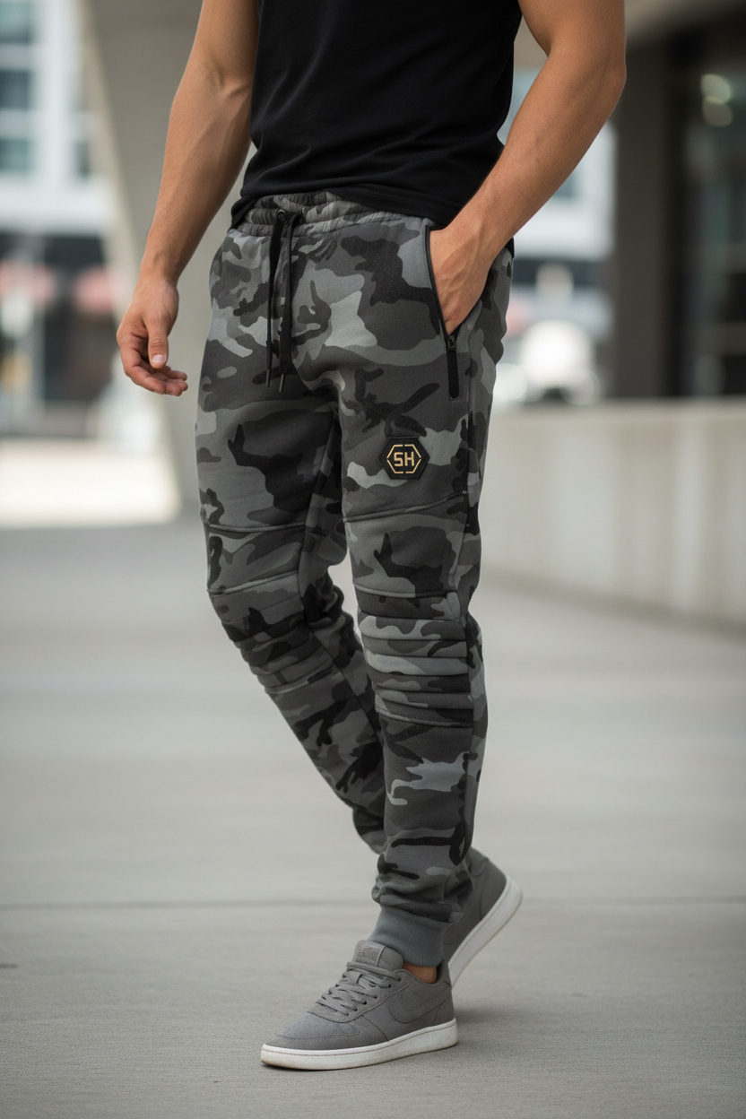 Pánské zateplené maskáčové tepláky VINTE šedý maskáč